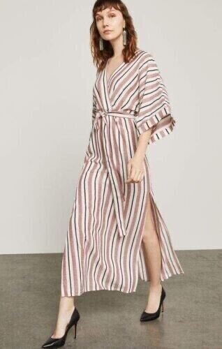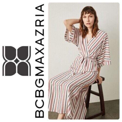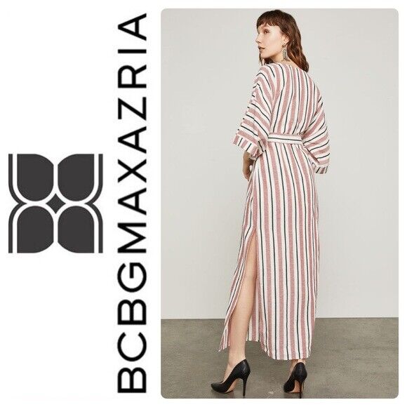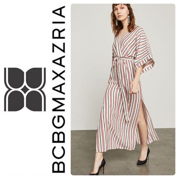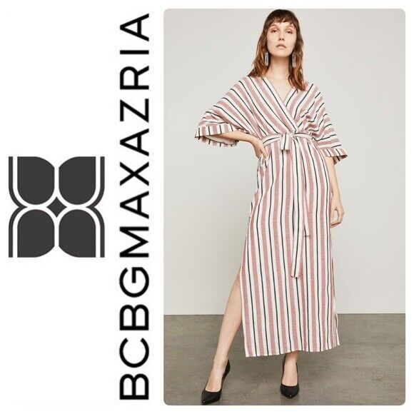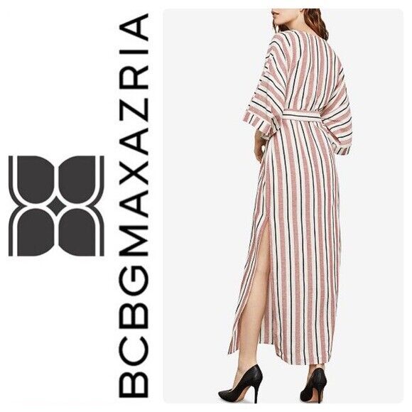 BCBGMAXAZRIA Faux Wrap Maxi Dress In Tandoori Spice Multi Stripe Size XS
