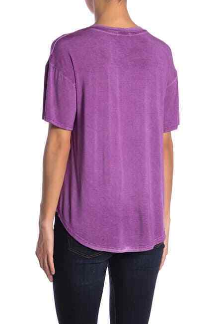 Abound Short Sleeve V Neck High/Low T-Shirt In Washed Purple Sunset Size XS