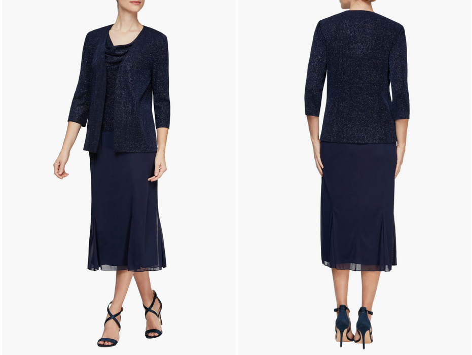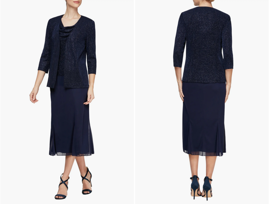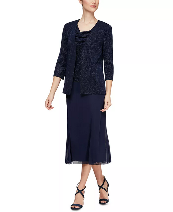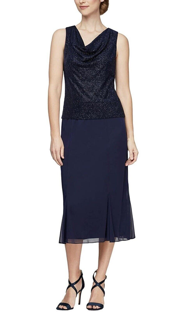 Alex Evenings Women's Tea Length Cowl Neckline midi Dress Navy 14 (only dress)