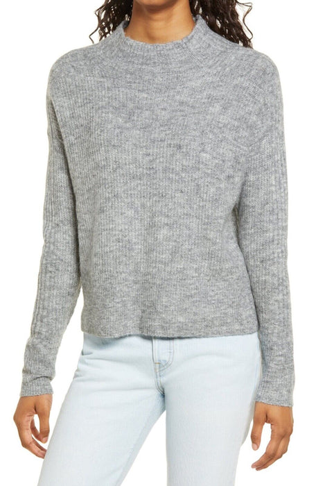 All In Favor Women's Funnel Mock Neck Long Sleeve Sweater Heather Gray Size L