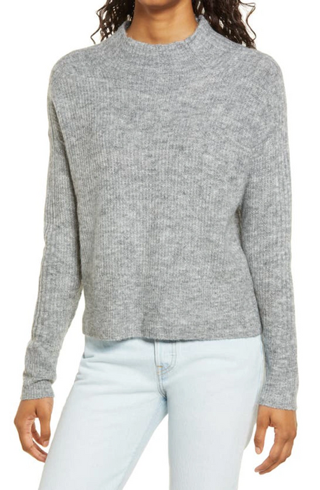 A funnel-neck sweater in a warm knit is styled for a relaxed fit in goes-with-everything heather grey. Style Name: All In Favor Funnel Neck Sweater