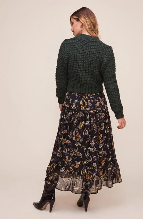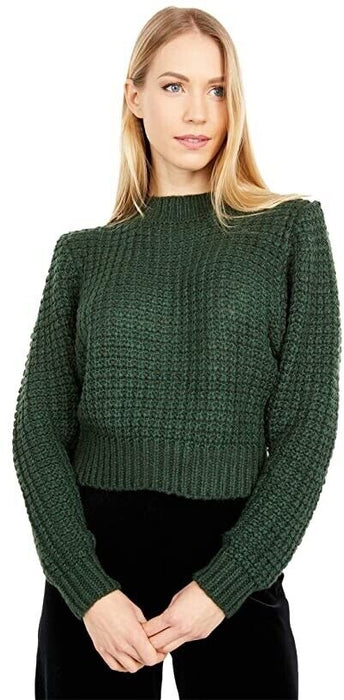 The Kellie sweater combines comfort and fashion in one fell swoop! It features a chunky knit construction thats perfect for fall! A flattering mock neck collar descends to a relaxed bodice and knit hem. Long sleeves