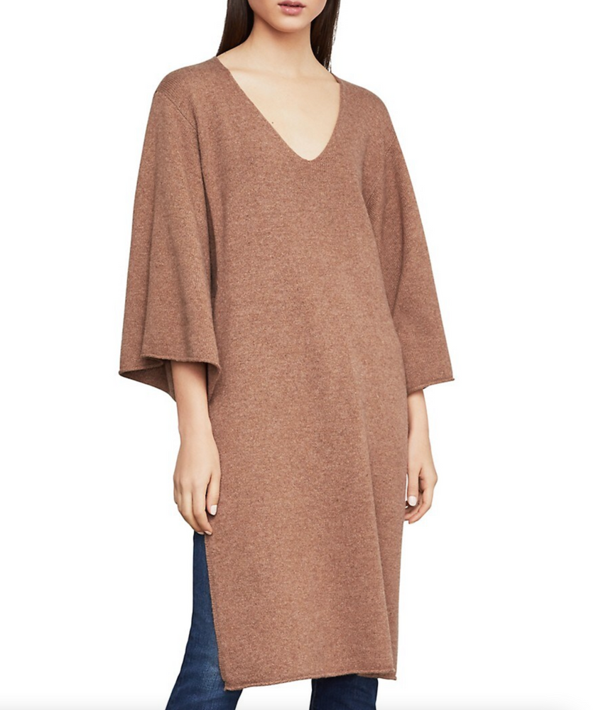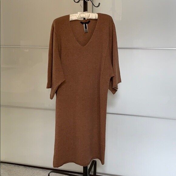 BCBGMAXAZRIA Flared Sleeve Tunic Merino Wool Sweater Dark Camel Size XS S $308