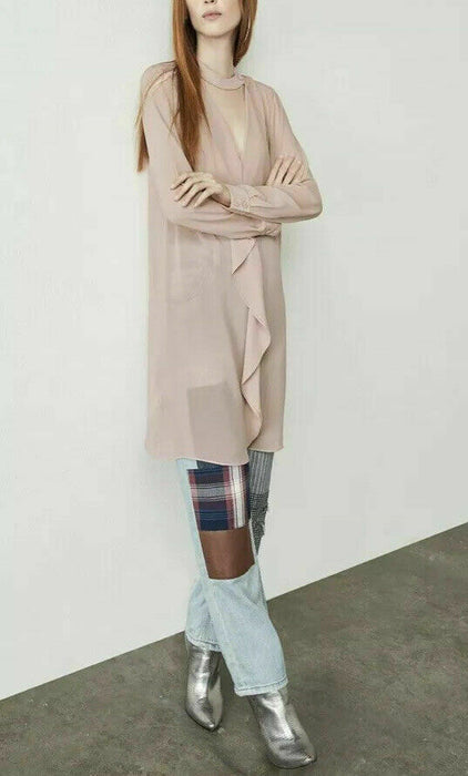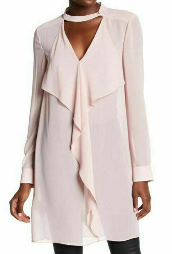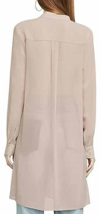 Elegant refinement defines this long-sleeve tunic dress in fluid georgette embellished with a graceful front drape detail and banded collar. Wear it as a dress or layer it over pants or a skirt.