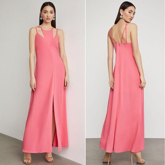 BCBGMAXAZRIA Women's Cut Out Maxi Dress With Side Slit In Pink Coral Size L $328