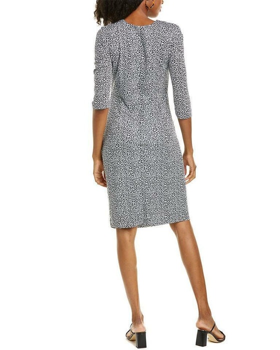Epona Midi Dress In Navy Multicolor With V-Neck, Ruched Left Waist, And 3/4-Length Sleeves