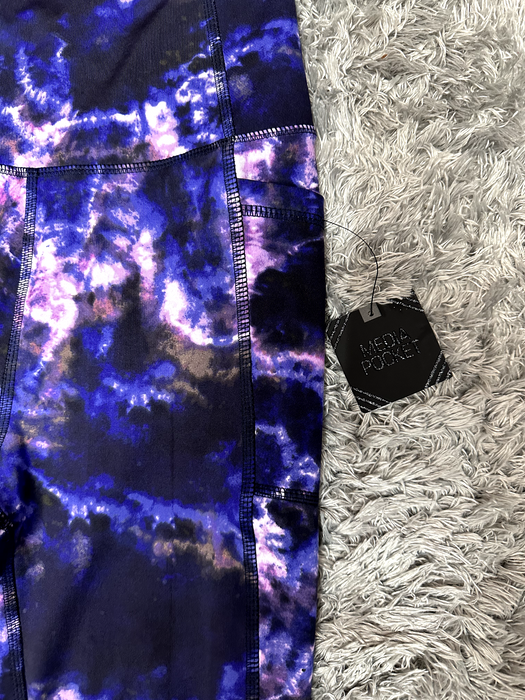 BSP Better Sports Performance Women's S Tie Dye Static Full Length Legging. Mesh detail on the calf. Side media pockets.