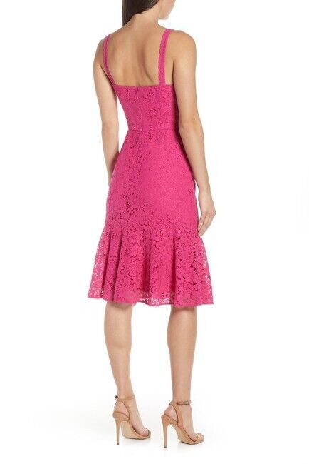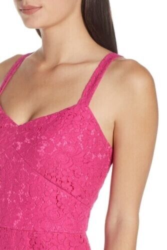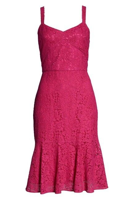 Fanciful floral lace lends charm to this enchanting sleeveless frock styled with a dipped neckline and flouncy hem. - V-neck - Sleeveless - Back zip closure - Lace construction - Lined - Approx. 41" length (size 8