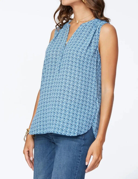 Pleats at the shoulders and back yoke enhance the look and fit of this blouse, styled with a curved hem and a hidden-button placket.