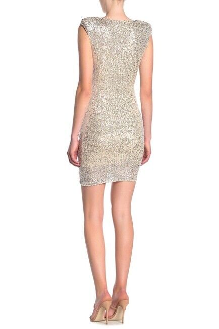 Turn heads in a bodycon dress for a figure flattering silhouette and allover sequin detail. - V-neck - Sleeveless dress with shoulder pads - Slips on over head - Side ruche detailing - Allover sequin detail - Stretch construction - Lined - Approx. 35.5" length - Imported