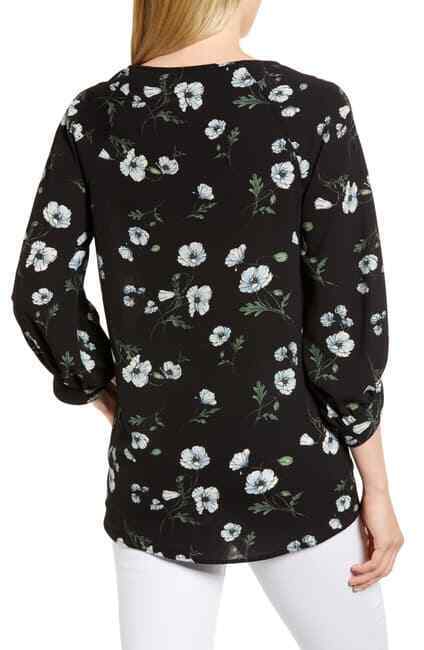 Gibson x Living Maggie Twist Hem Top Black/Blue Floral Size XS