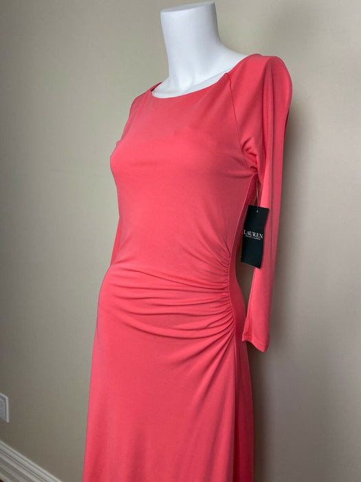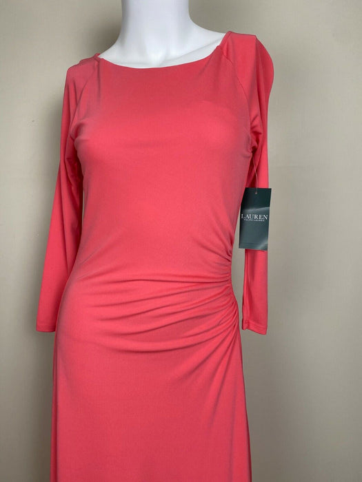 Lauren Ralph Lauren Ruched Stretch Jersey Fit & Flare Dress In Pink Size M $180