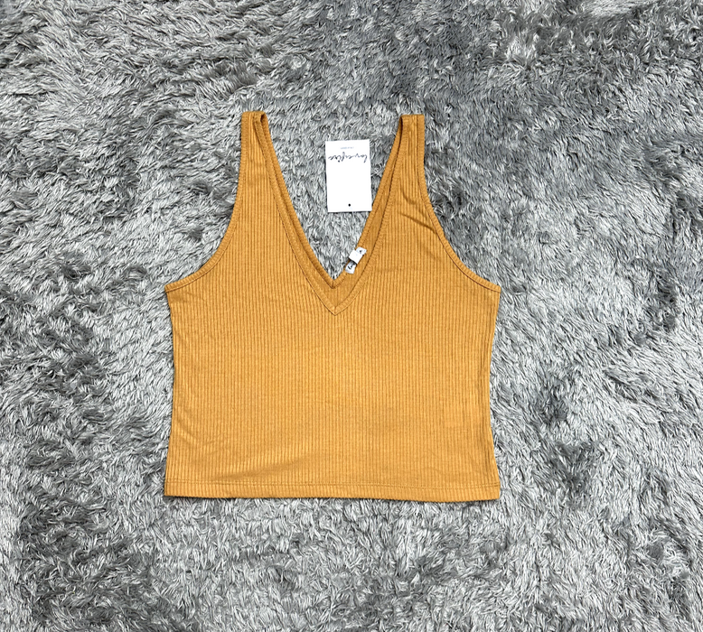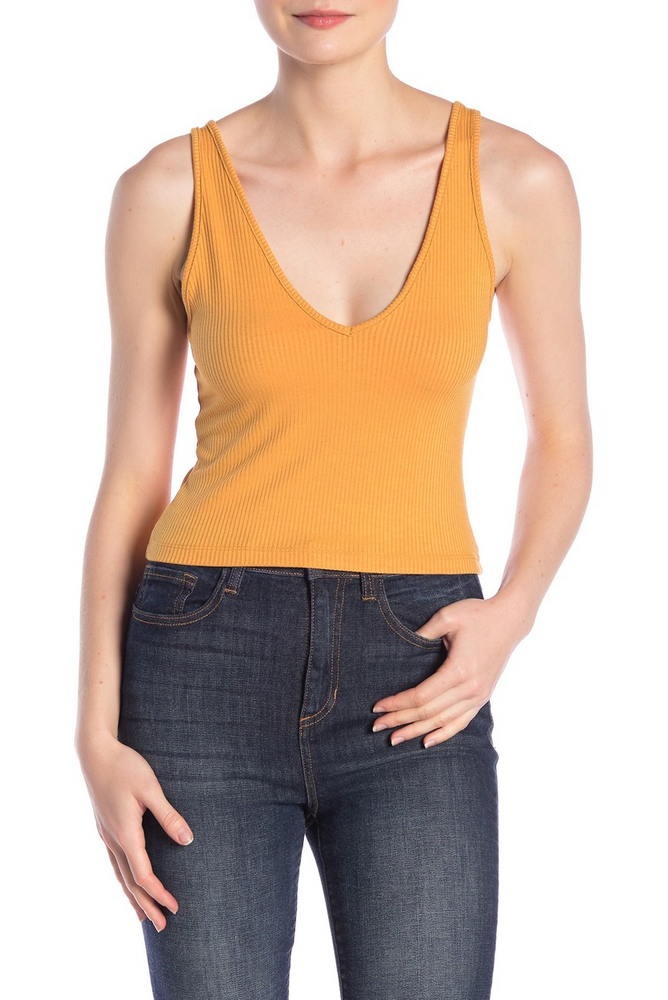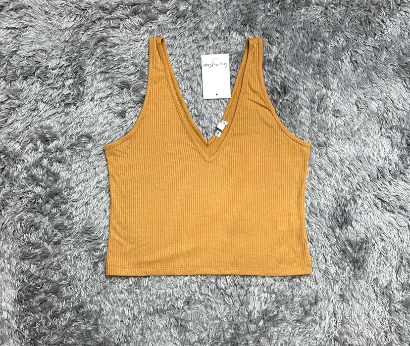 Love Fire Women's Sleeveless V Neck Ribbed Tank Top Lightweight mustard Size L