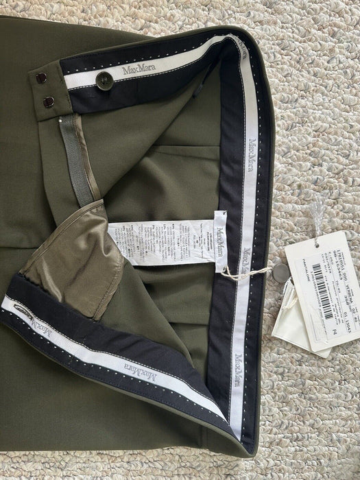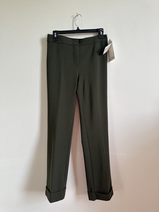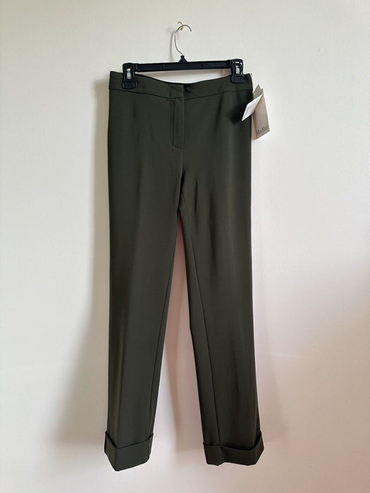 Elevate your wardrobe with these stylish Max Mara women's verbena pants in meltier green, size 40 (6US). The pants feature a flat front and straight leg style, crafted from a luxurious viscose blend, elastan, and polyamide material, providing both comfort and durability. These pants are perfect for any occasion, whether it's a party, cocktail, casual, formal, or business setting.