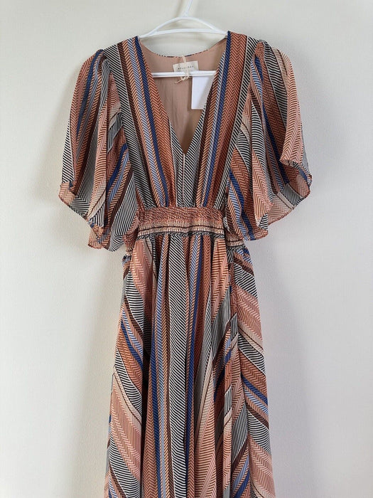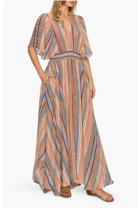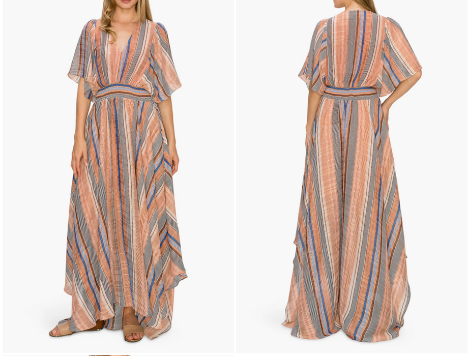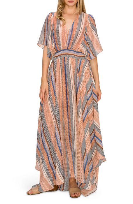 Flirty flutter sleeves bring boho appeal to this contemporary crepe maxi dress that's sure to get tons of compliments.