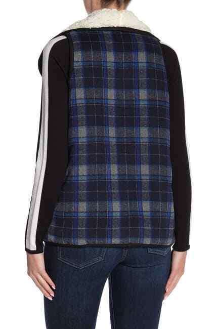 Melrose And Market Faux Shearling Reversible Vest Blue Plaid Print One Size