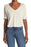A stripe print and cool knot sleeves completes this stylish T-shirt. V-neck. Short knotted sleeves. Cropped hem. Stripe print. Approx. 20" length front, 22" back. Imported