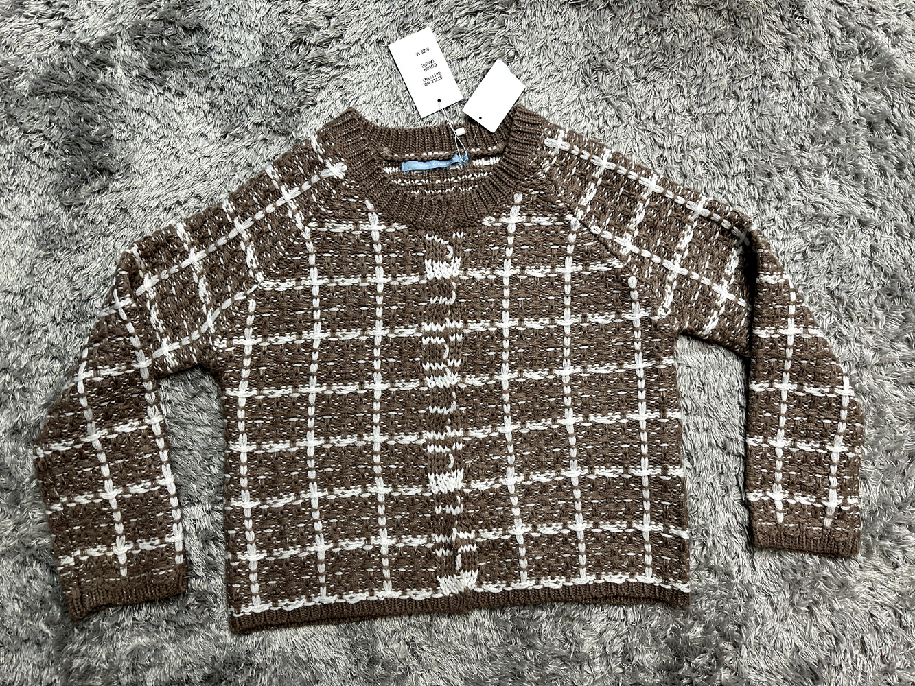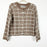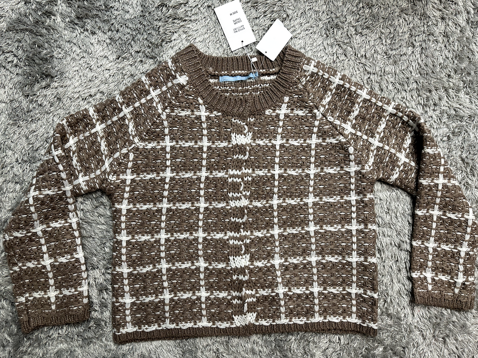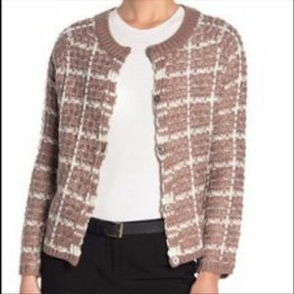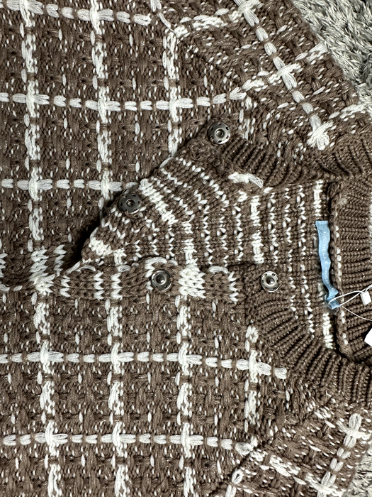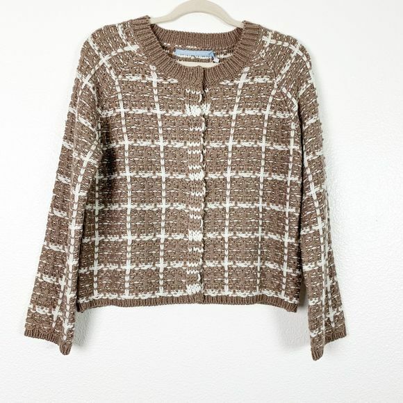 Size: Medium Color: Taupe - snap button up - Knitted - Crew neck - Long sleeve - Plaid pattern