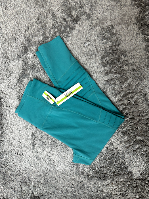 Nicole Miller Sport High Waisted 7/8 Activewear Moto Leggings-size L in teal