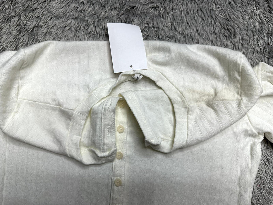 Knit from stretch-kissed organic cotton, this pointelle top, tossed with curly lettuce edging, puts adorable on the agenda. Style Name:Reformation Nisa Organic Stretch Cotton Pointelle Top. Style Number: 6103861.