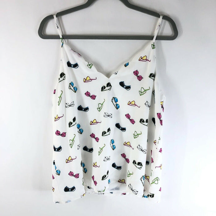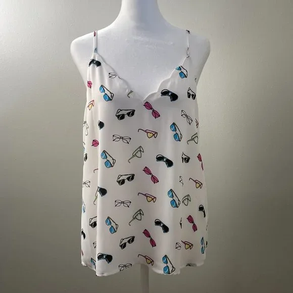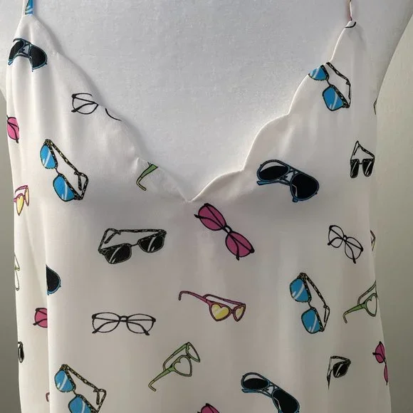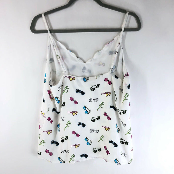 Socialite Womens Cami Top Scalloped Edge Sunglasses Novelty Sleeveless White S