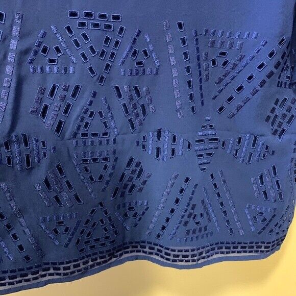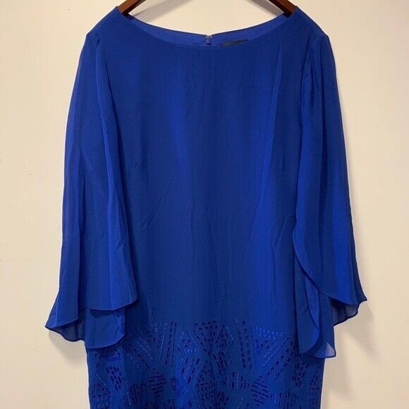 This stunning Tahari Arthur S. Levine dress in brilliant blue is perfect for any occasion. The sheath style dress features a crew neck and half sleeves, with a sleeveless sleeve type, making it a great option for all seasons. The dress is made of lightweight 100% polyester chiffon fabric, and has a knee-length dress length. The dress is brand new with tags, never worn, and has a zip closure.