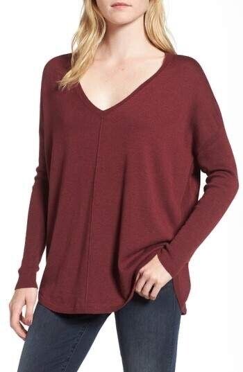 Trouve Everyday V Neck Long Sleeve Sweater In Burgundy London Size M