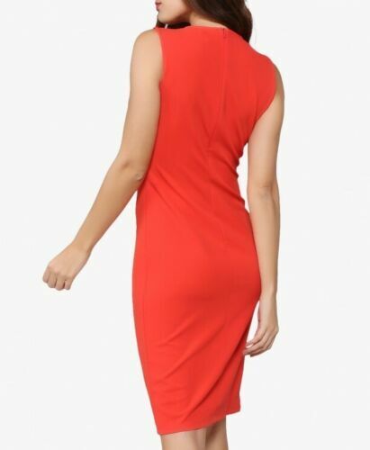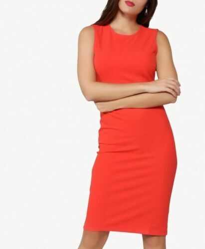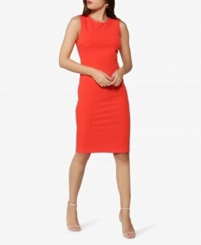 Sleeveless dress with a round neckline. There is a zipper closure at the back. It is made in crepe. The fabric is stretch.