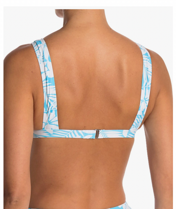 - - Non-adjustable straps - Triangle cups with crossed detail - Allover tropical print - Knit -